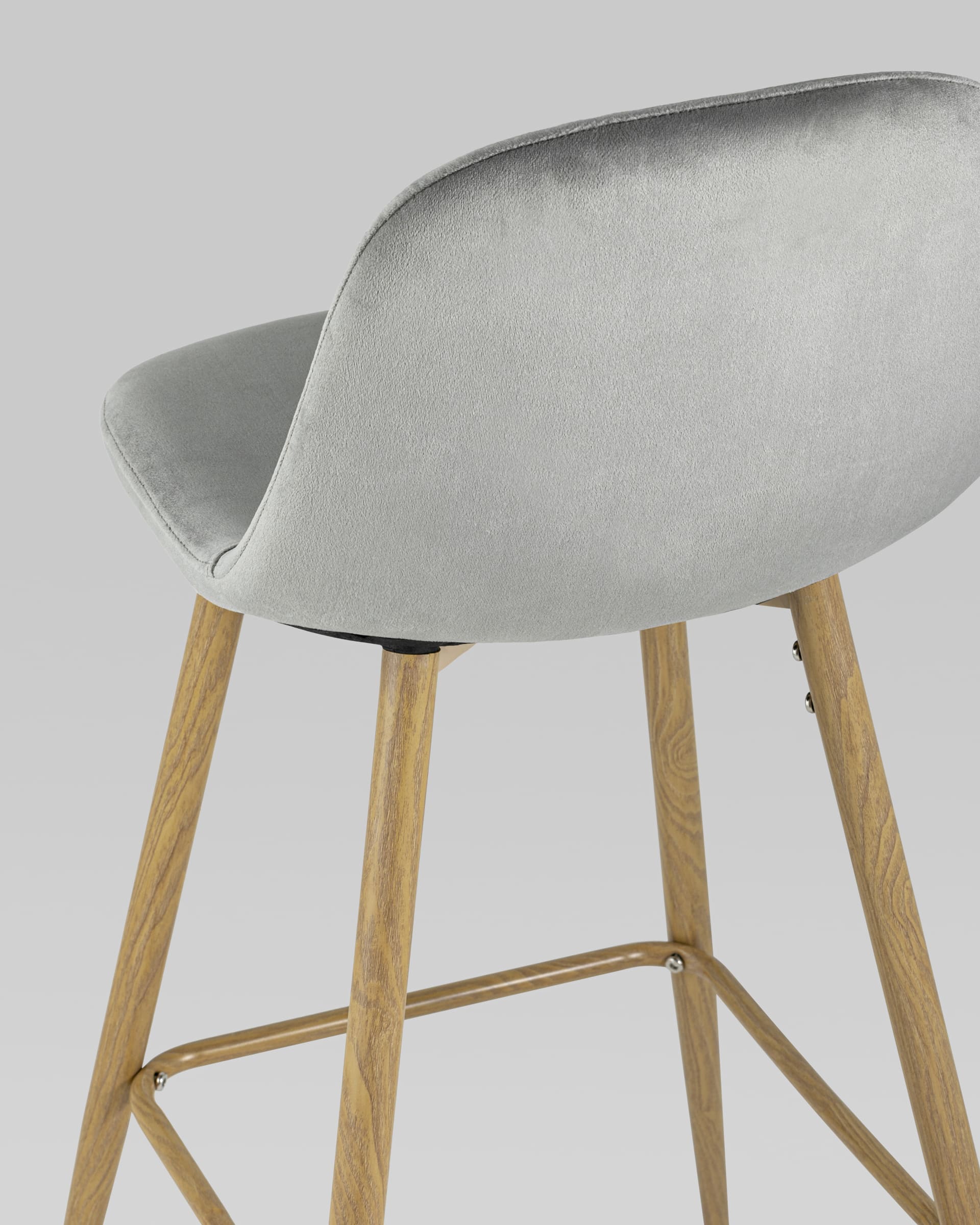 Стул барный Валенсия велюр серый ножки цвет дерево